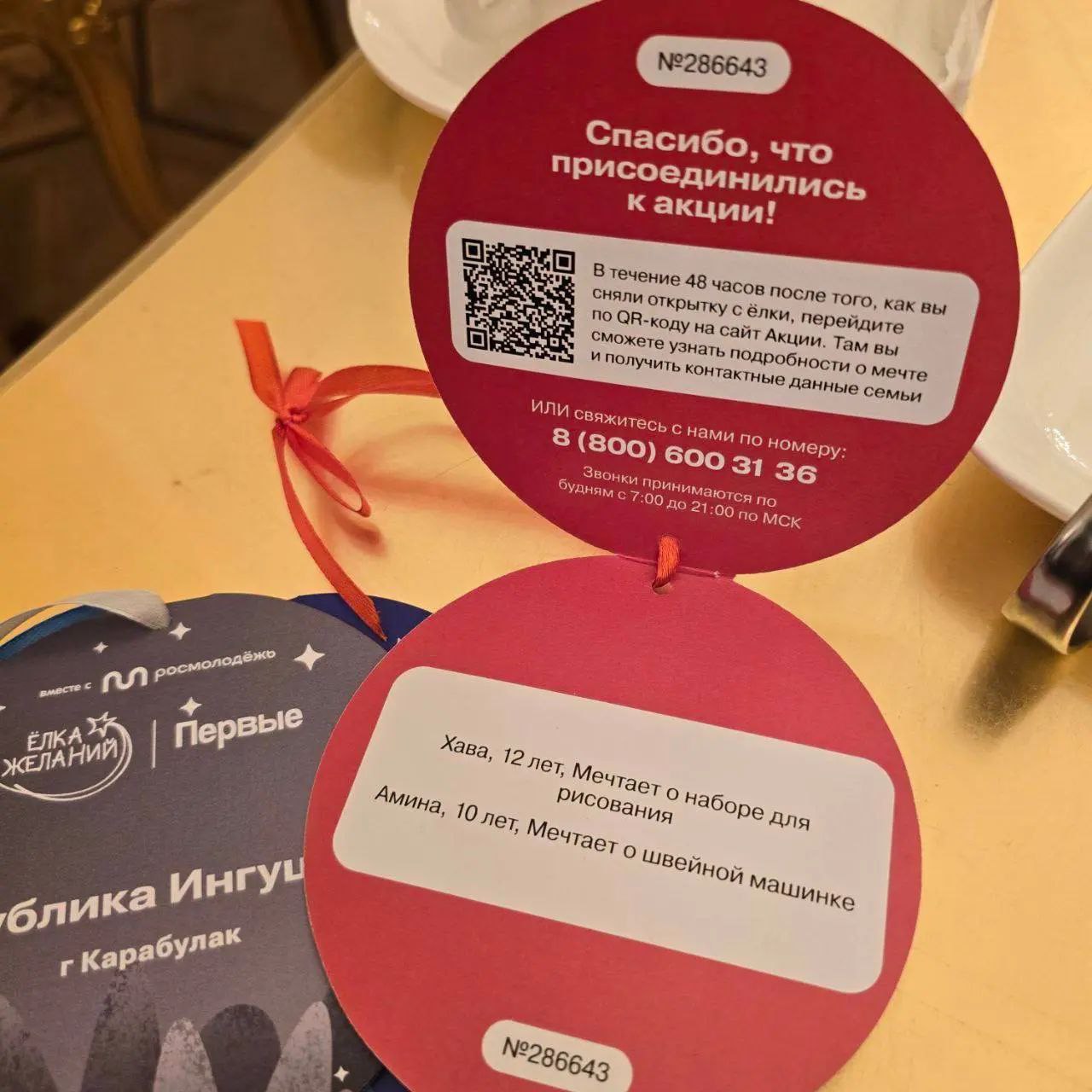 По его словам, сестры Хава и Амина 12 и 10 лет из села Средние Ачалуки Малгобекского района мечтают о наборе для рисования и швейной машине. 14-летняя София из Запорожской области загадала набор акриловых маркеров, 10-летний Халид из города Карабулака хочет синтезатор.