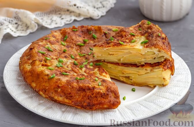 - С картофелем и луком: Тонкие кружочки картофеля обжариваются с луком и специями, а затем смешиваются с омлетной массой. Это идеально сбалансированное блюдо порадует своей сытностью и ароматом.