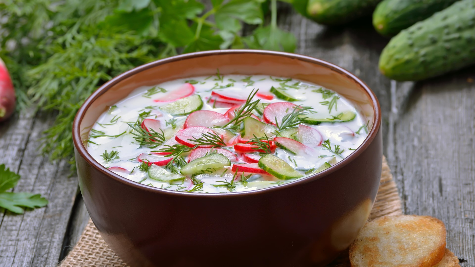 В семьях нередко случается разлад на тему того, какая заправка лучше подходит для окрошки. Можно сделать ход конем и попробовать нечто новое. Приготовьте охлаждающий суп по этому рецепту, чтобы удивить всю семью и гостей.