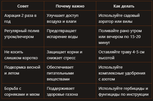 Важно помнить, что здоровый и ухоженный газон не только радует глаз, но и значительно улучшает микроклимат на участке. Трава охлаждает воздух, задерживает пыль и помогает снизить уровень шума. Таким образом, зеленый ковер — это не только эстетическое наслаждение, но и важный элемент здоровой экосистемы вашего дома.