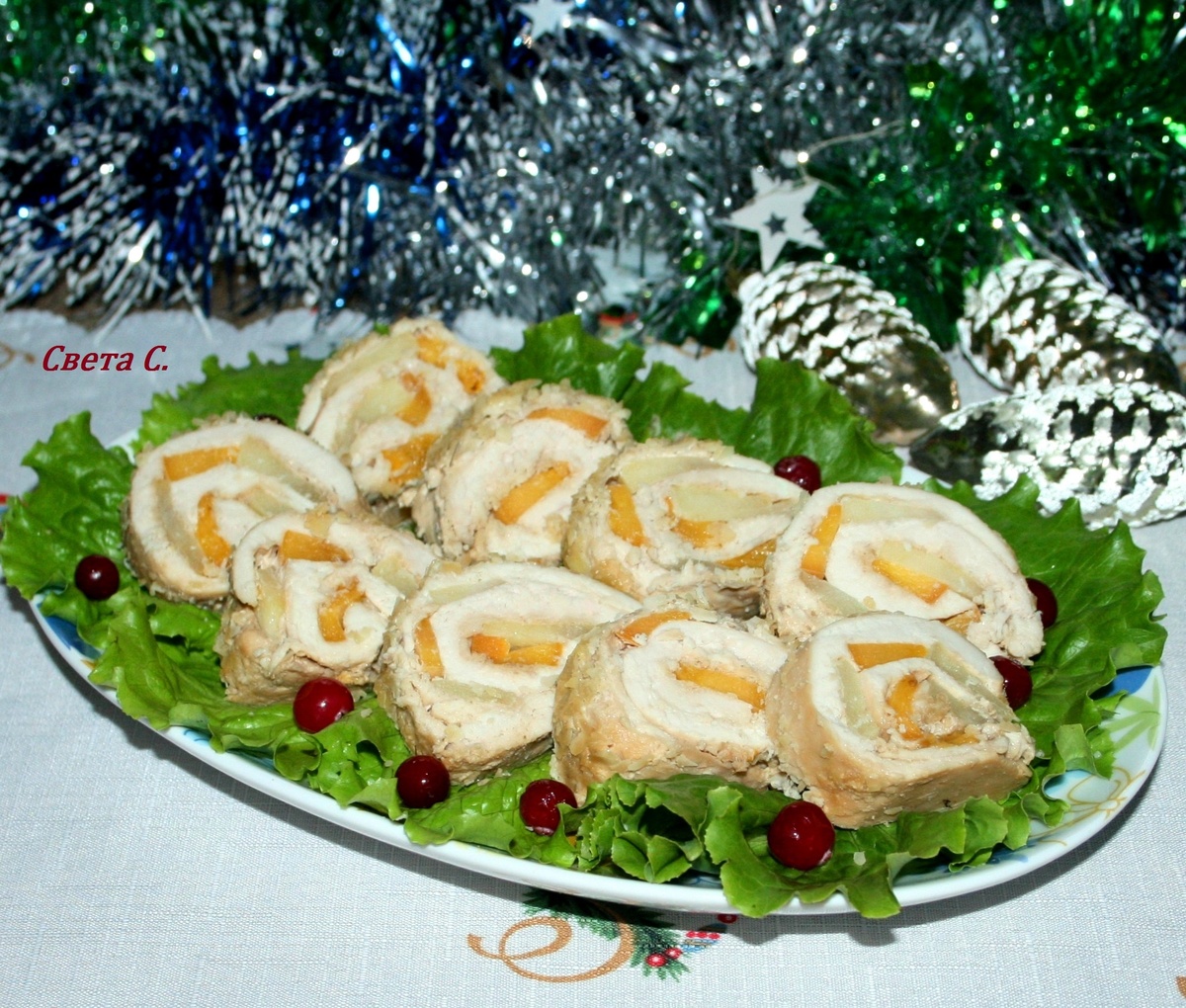 Необычный куриный рулет с фруктами для вашего праздничного стола