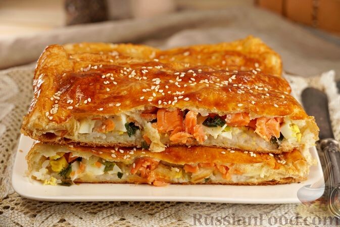 На праздник традиционно пекут пироги: слоёное дрожжевое тесто держит начинку из красной рыбы, риса и яйца, а зелёный лук и лимон завершают вкус. Такой набор напоминает, как важна простота и уважение к продукту: ничего лишнего, только лучшее, что есть под рукой.