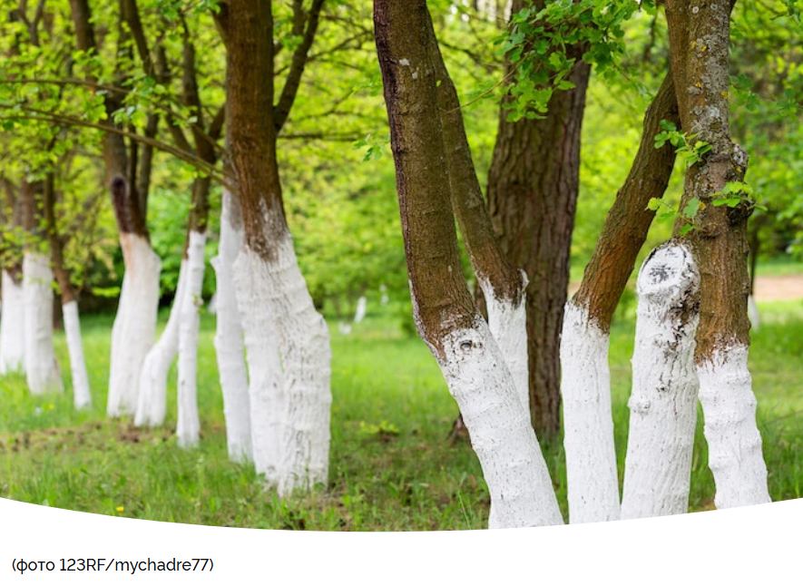 Плюс побелка служит как небольшой барьер от спор грибков и личинок, которые зимой прятались в трещинах коры. Устойчивость к перепадам дневной и ночной температуры тоже возрастает, что поддерживает гармонию внутренних процессов в тканях дерева.