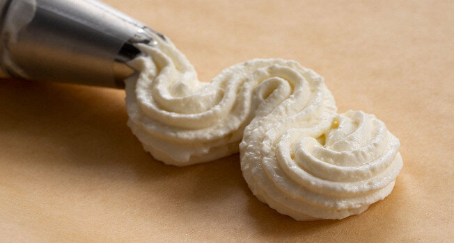 Готовый крем можно использовать для прослоек, декора или начинки — он хорошо сочетается с эклерами, рулетами и тортами, а также просто идёт к ягодам.