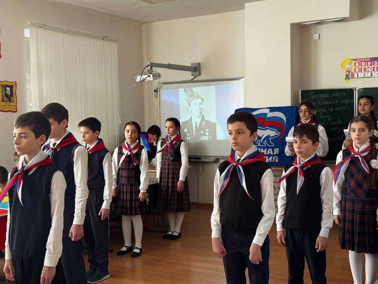 Занятие прошло в 4-й школе города Карабулак. Урок приурочили к 34-й годовщине со дня гибели первого Героя России, генерал-майора авиации Суламбека Осканова.