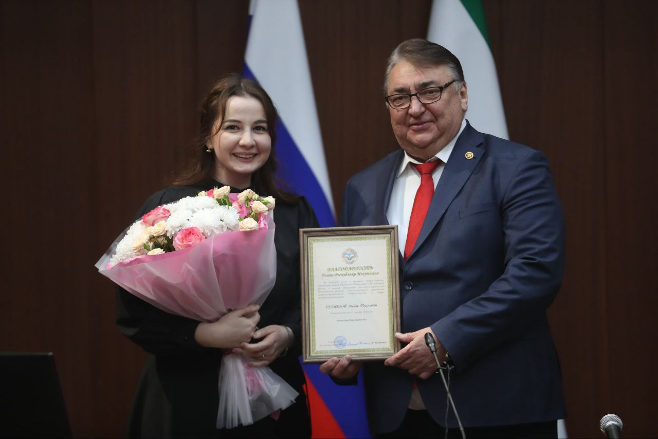 Грамотой Главы РИ награждены Радмила Нальгиева (президент ТПП РИ), Айна Алиева (директор ГБУ «Филармония им. А. Хамхоева»), Лема Нальгиева (солистка филармонии) и другие.