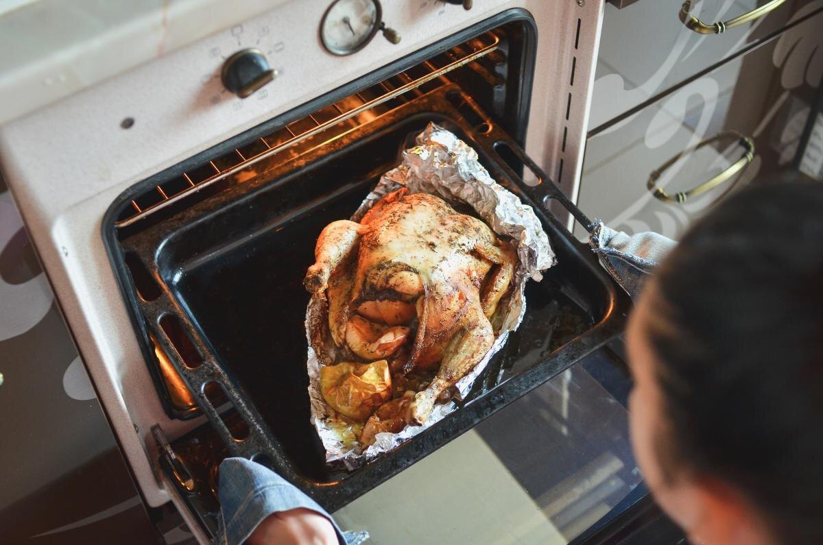 - Сохраняя сочность мяса: При запекании курицы или индейки, неплотно накрывая мясо фольгой, можно предотвратить его пересушивание и появление подгоревшей корочки.