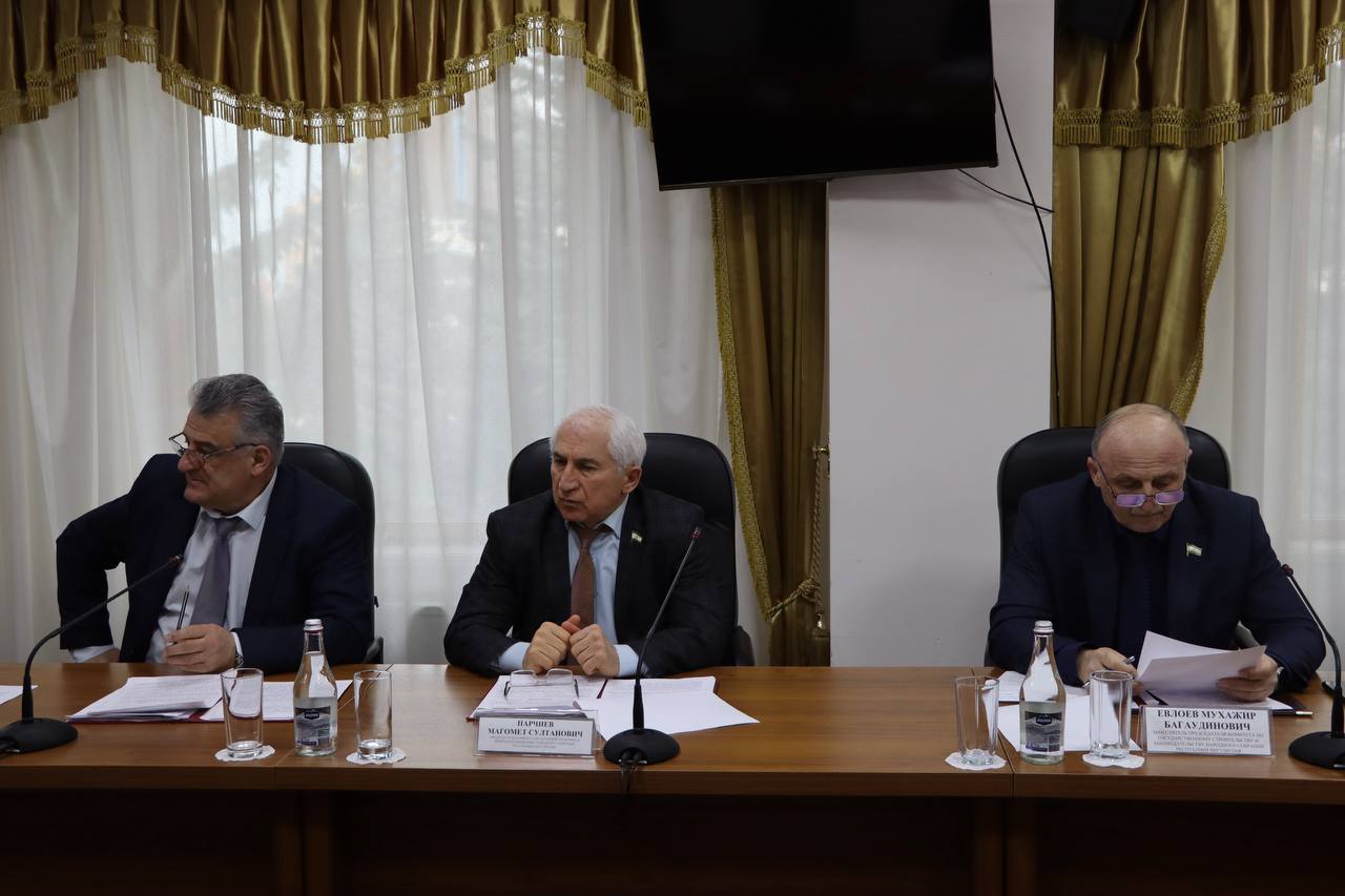 Председатель Народного Собрания Магомет Тумгоев провел еженедельное совещание при участии руководителей парламентских комитетов, фракций, представителя Правительства РИ, региональной прокуратуры.