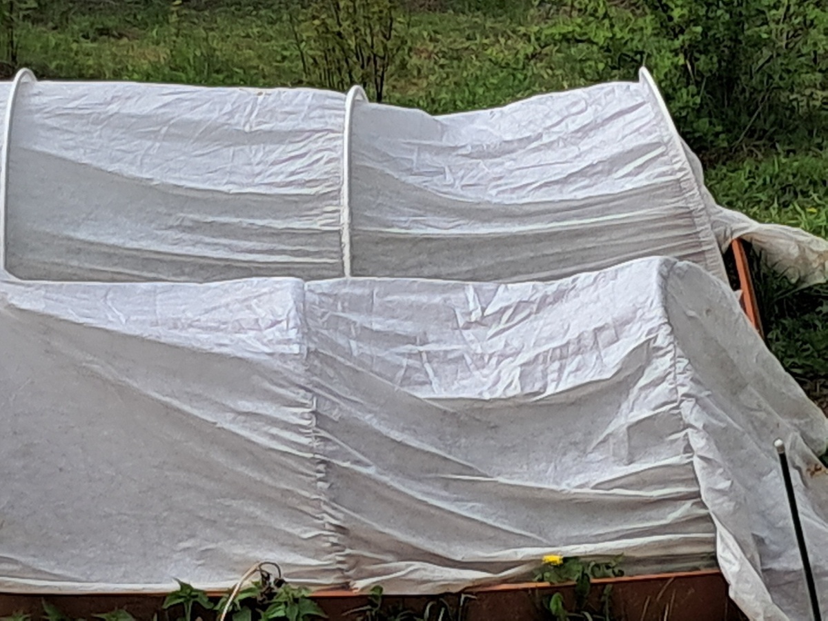 Рекомендации по использованию: натянуть агроткань над каркасом, например, с помощью дуг или подставив пустые контейнеры с водой. Важно избегать прямого контакта с нежными растениями, чтобы избежать их повреждения.