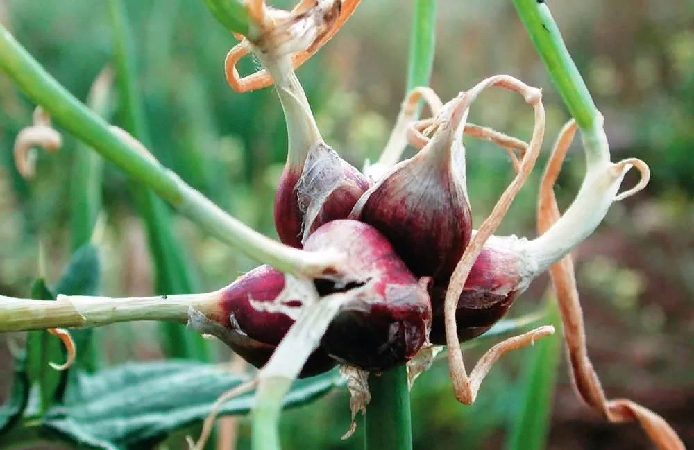 Рогатый лук славится своей морозоустойчивостью, что делает его идеальным выбором для регионов с продолжительными зимами. Выращивание этого лука не требует особых условий: его можно размножать делением куста или воздушными луковичками, что значительно упрощает процесс.