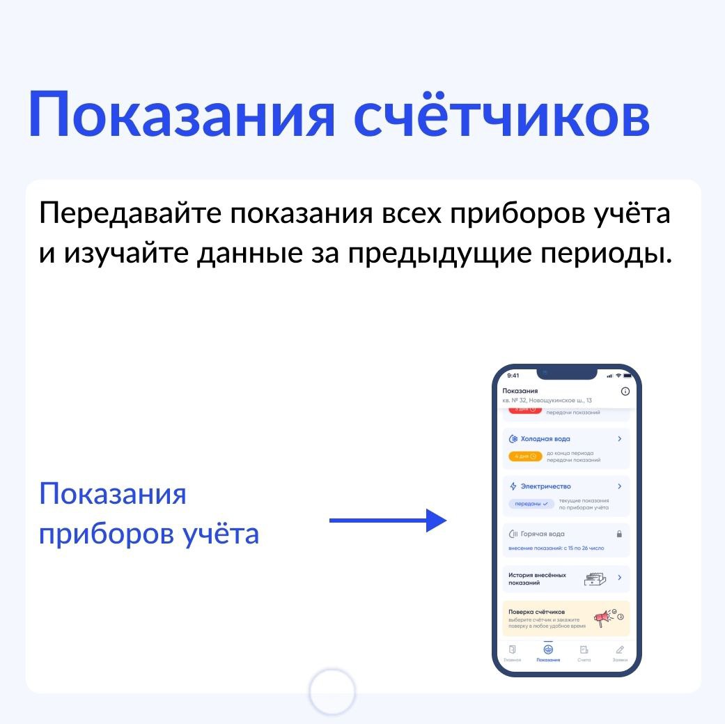 Передавать показания счётчиков в пару кликов.