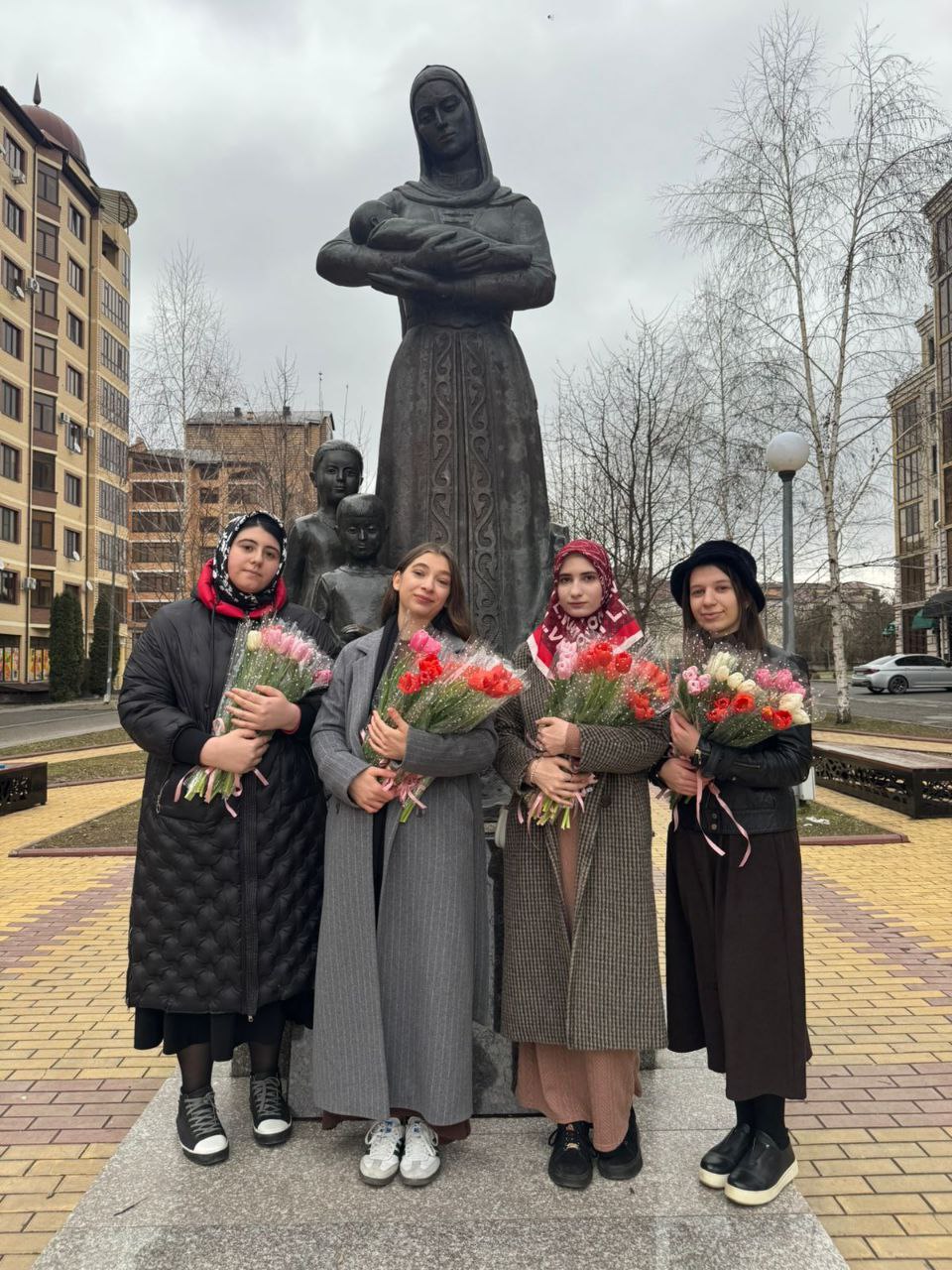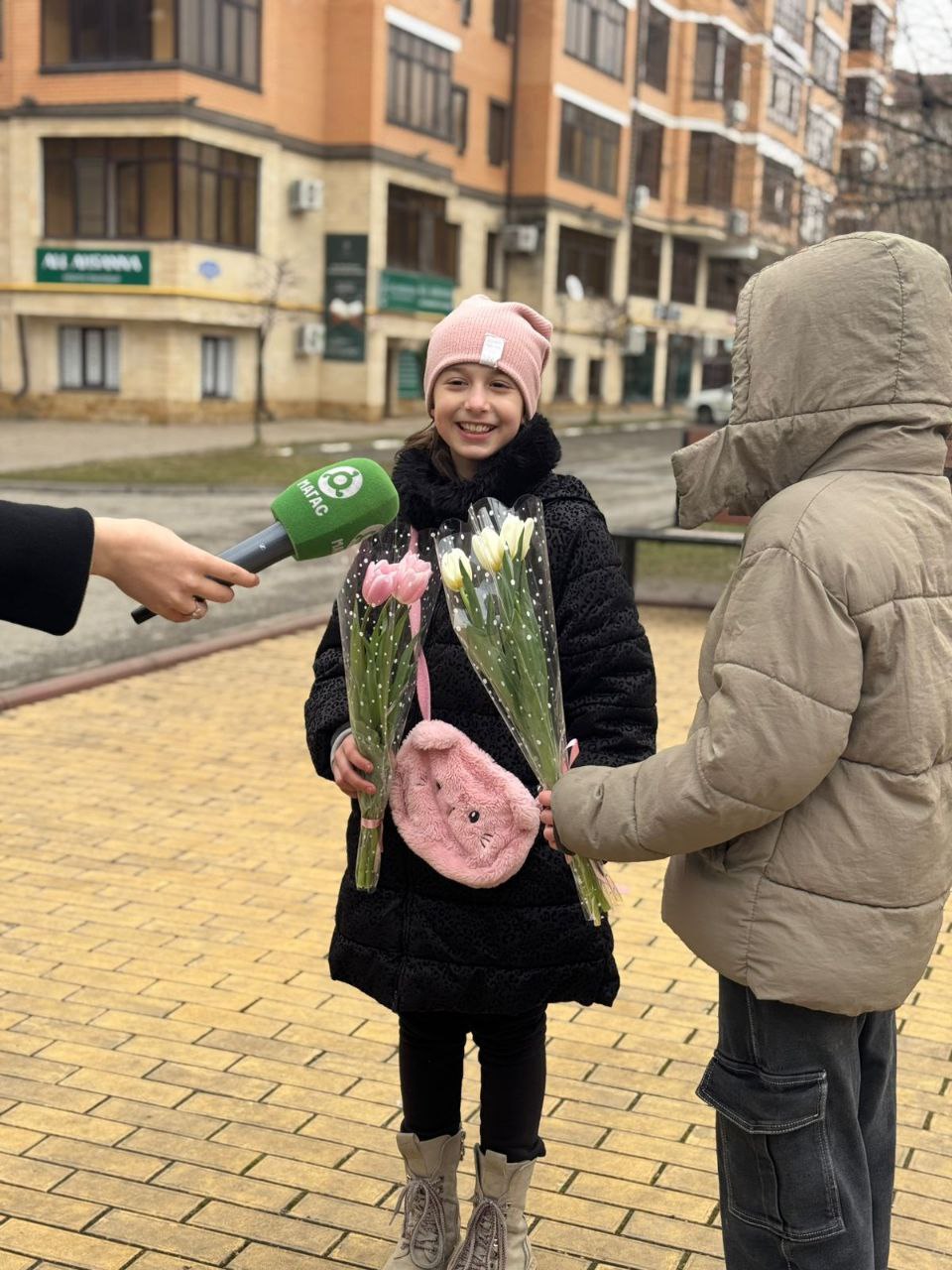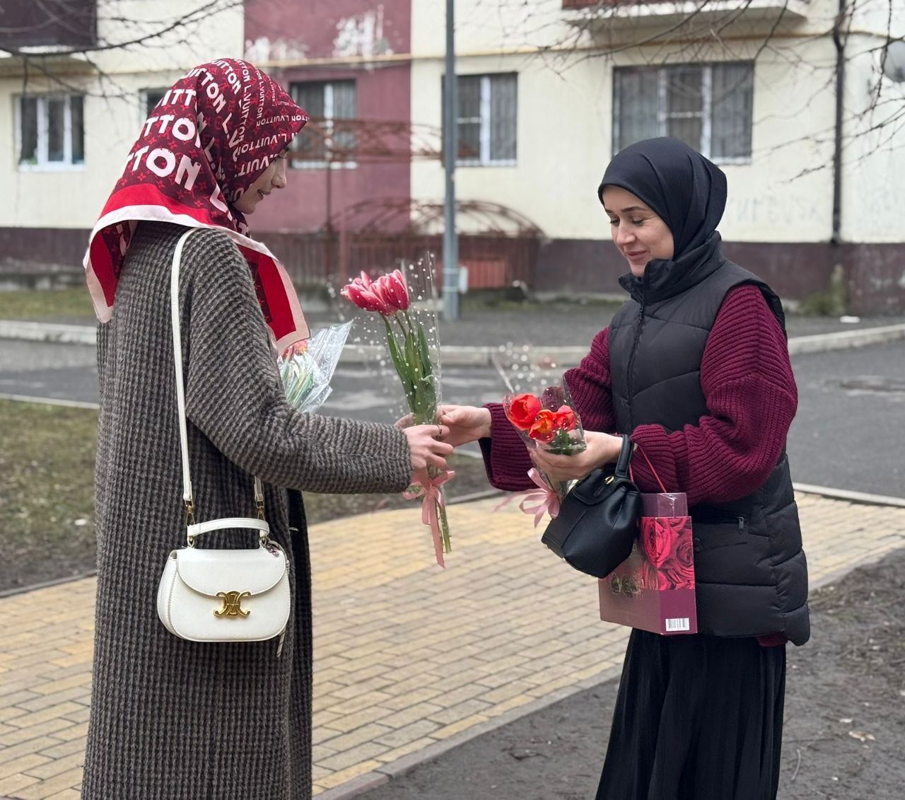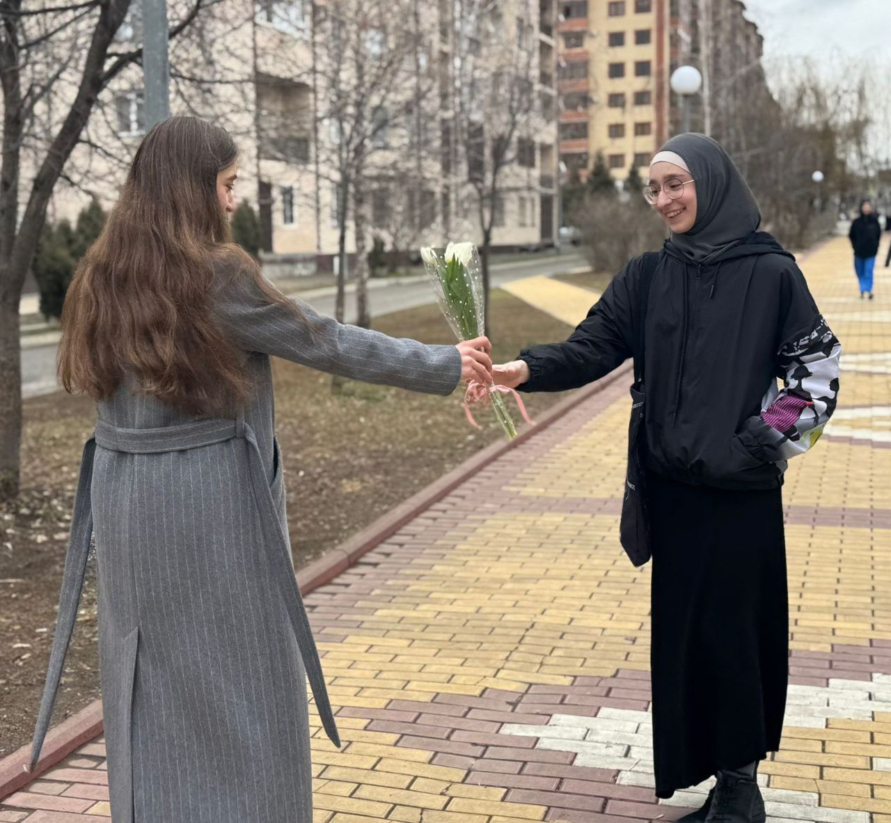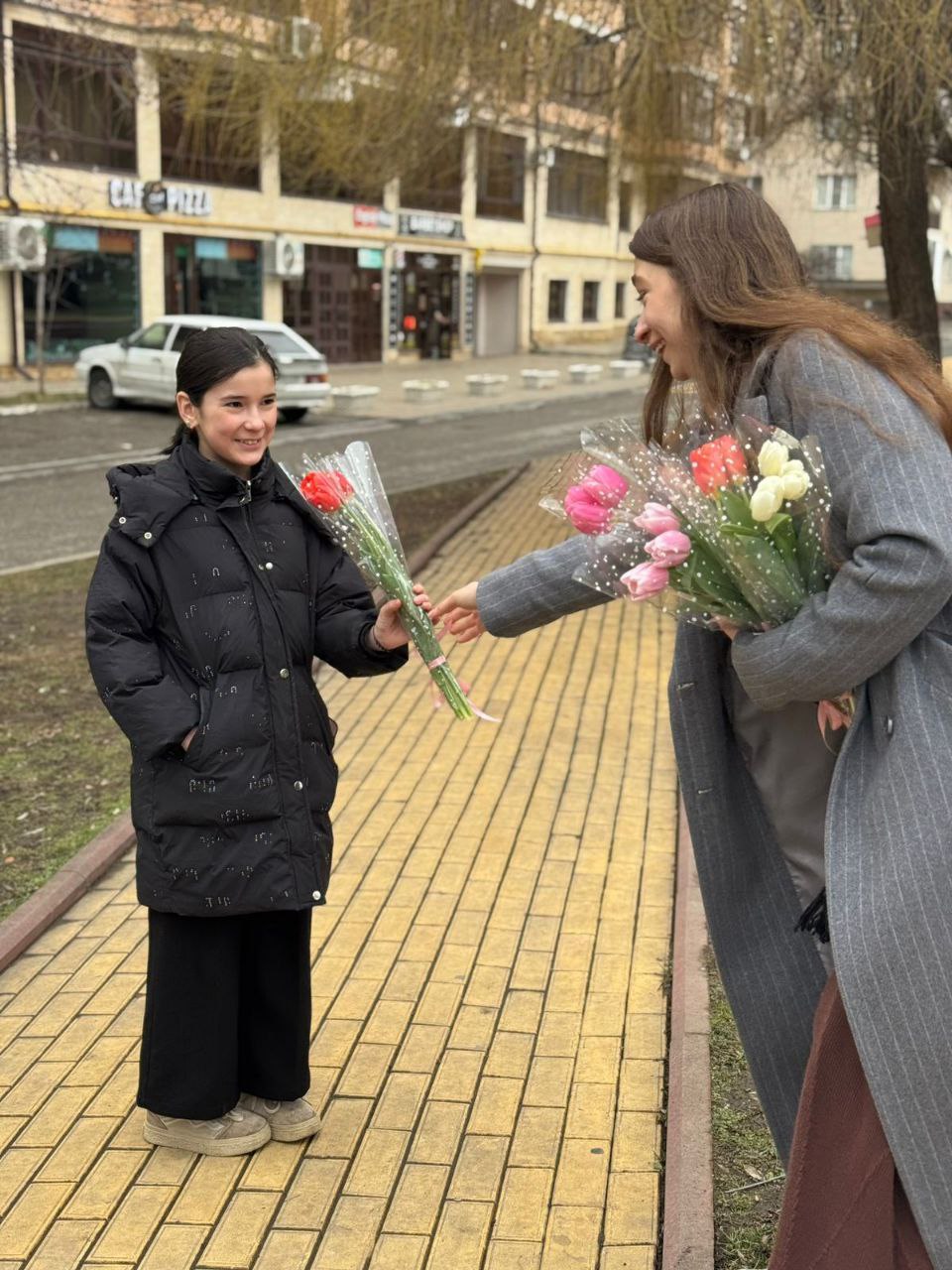 Сегодня ребята из Молодежного совета при Главе г. Магас вышли с цветами, чтобы поздравить наших дорогих женщин с