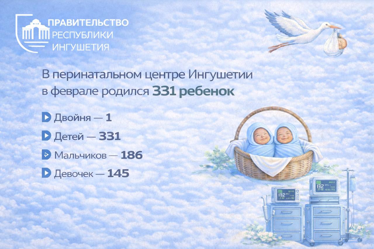 Напомним, что по итогам 2025 года в Ингушетии родилось 7 819 детей, что позволило республике войти в пятерку лидеров среди субъектов Российской Федерации и занять одну из ведущих позиций в Северо-Кавказском федеральном округе.
