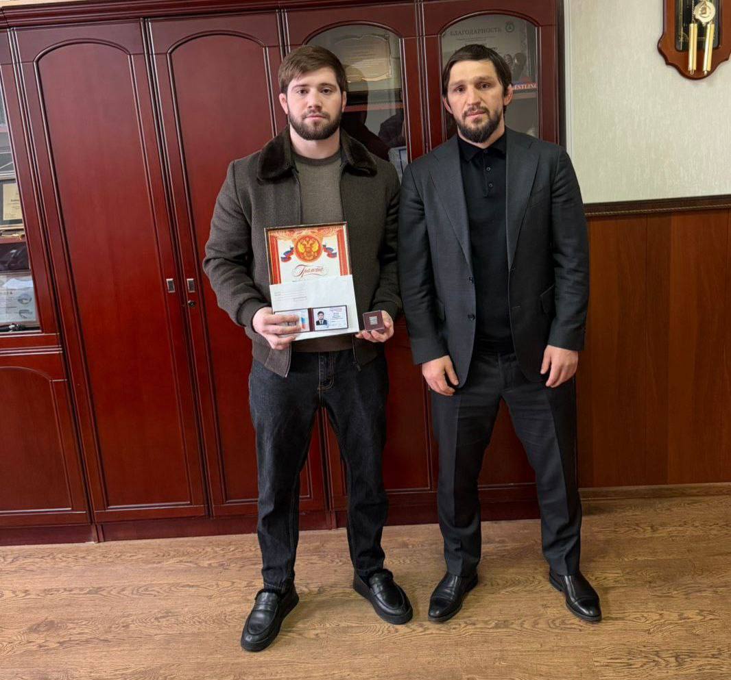 Министр спорта РИ Руслан Белхороев передал спортсмену удостоверение и нагрудный знак мастера спорта России.