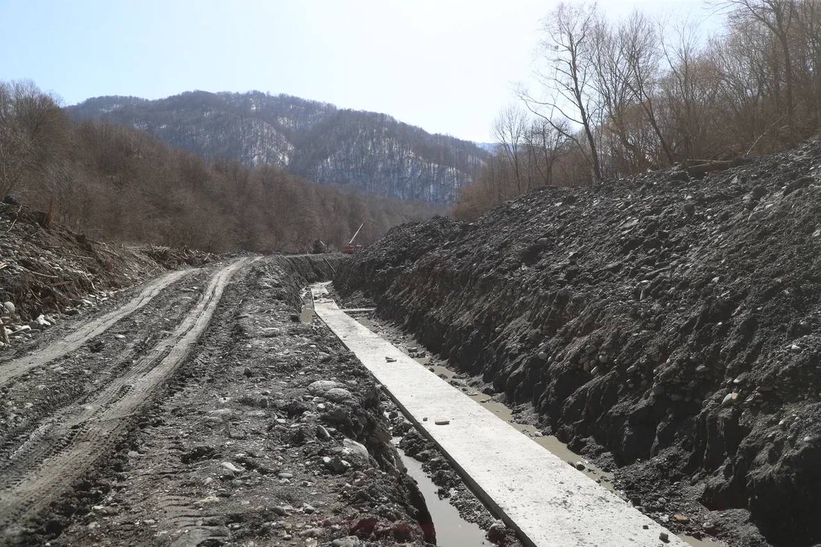 Сейчас специалисты выполняют комплекс подготовительных и земляных работ: ведётся планировка территории, снимается растительный слой грунта на участках будущих водоводов и подруслового водозабора, формируются основания.