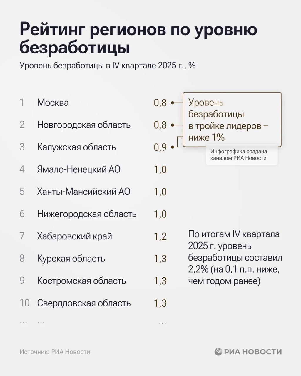 Самый низкий уровень безработицы - в Москве, Новгородской и Калужской областях, свидетельствуют данные соответствующего рейтинга регионов.