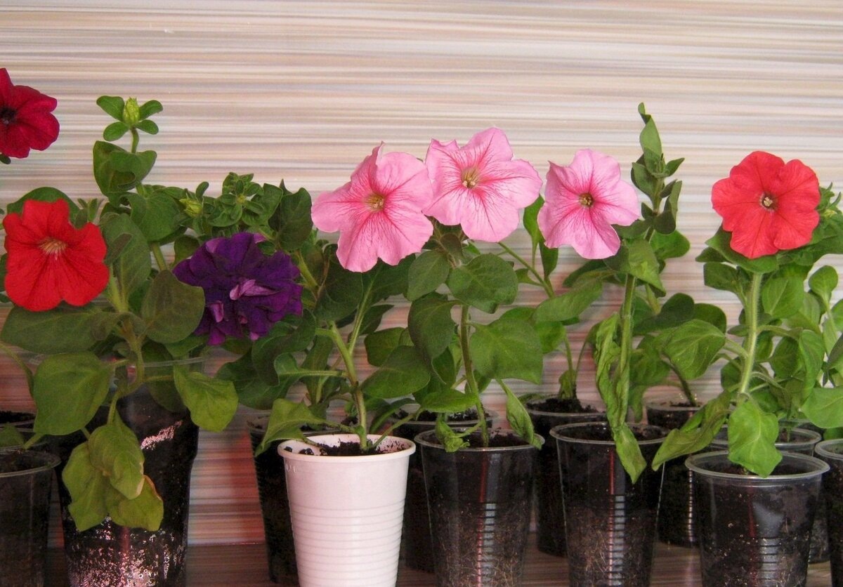 Регулярное прищипывание поможет формировать пышную крону петунии, а для размножения черенков используйте прозрачные стаканчики, чтобы создать тепличные условия.