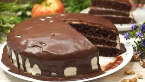 По желанию, можно подготовить шоколадную глазурь: растопить 100 г шоколада с 30-50 мл сливок на водяной бане и полить ей верх торта. Да, и не забудьте оставить торт на несколько часов при комнатной температуре для настойки.