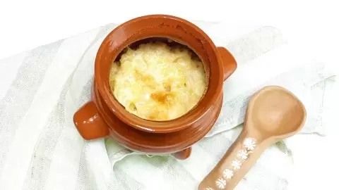 После того, как крупу подготовили, в нее добавляют соль и сахар, тщательно перемешивая. Если планируется готовить несколько порций, то количество ингредиентов нужно умножить на необходимое число горшочков. Содержимое горшков не должно превышать их край, чтобы молоко не выкипало при запекании.