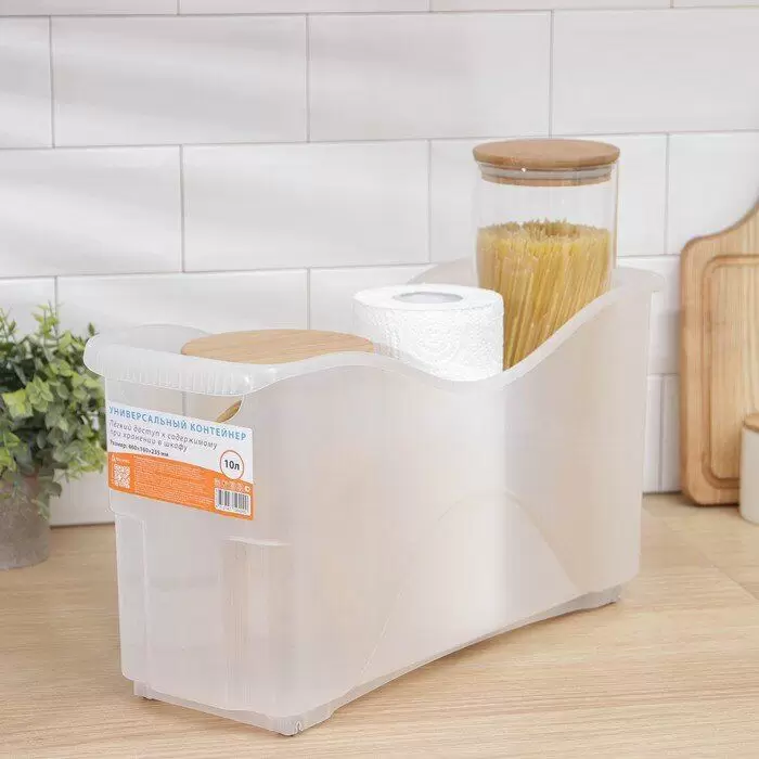 - Хранение ингредиентов: контейнер прекрасно подходит для мелких предметов, таких как крышки от кастрюль, упаковки для продуктов и небольшой бытовой химии.