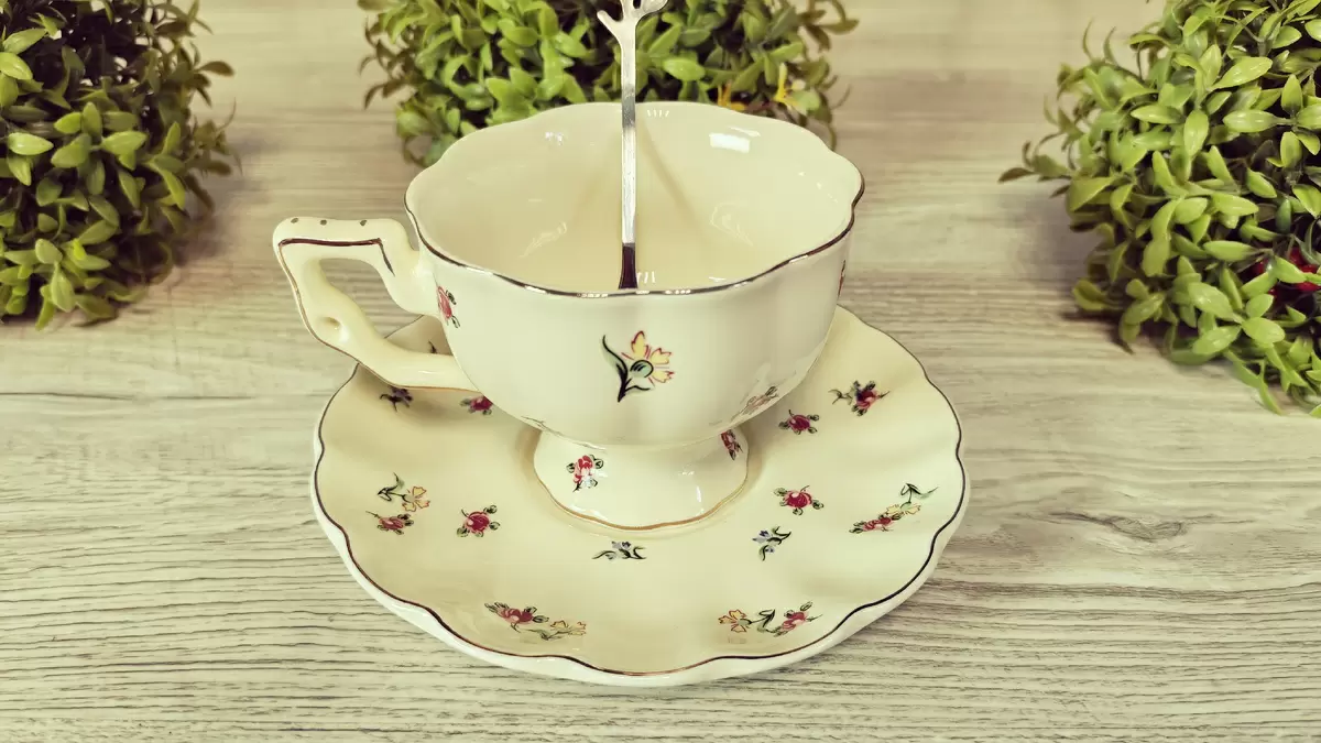 Данный комплект состоит из чашки и блюдца, и на этот раз ложечки нет. Благодаря качественной керамике, такой набор долго сохраняет первоначальный вид и станет идеальным подарком для ценителей чая.
