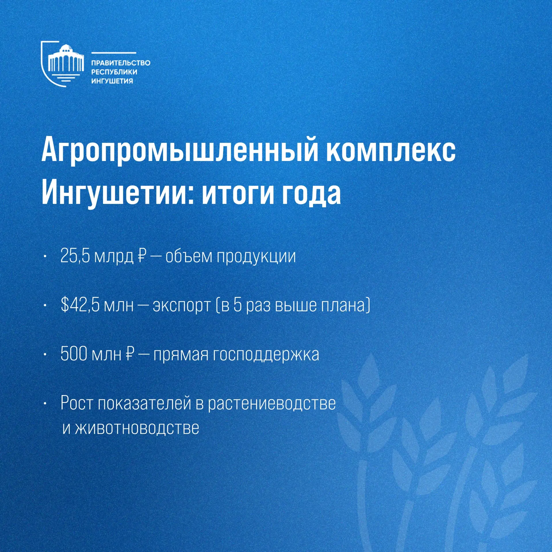 Агропромышленный комплекс Ингушетии по итогам 2025 года сохранил положительную динамику.