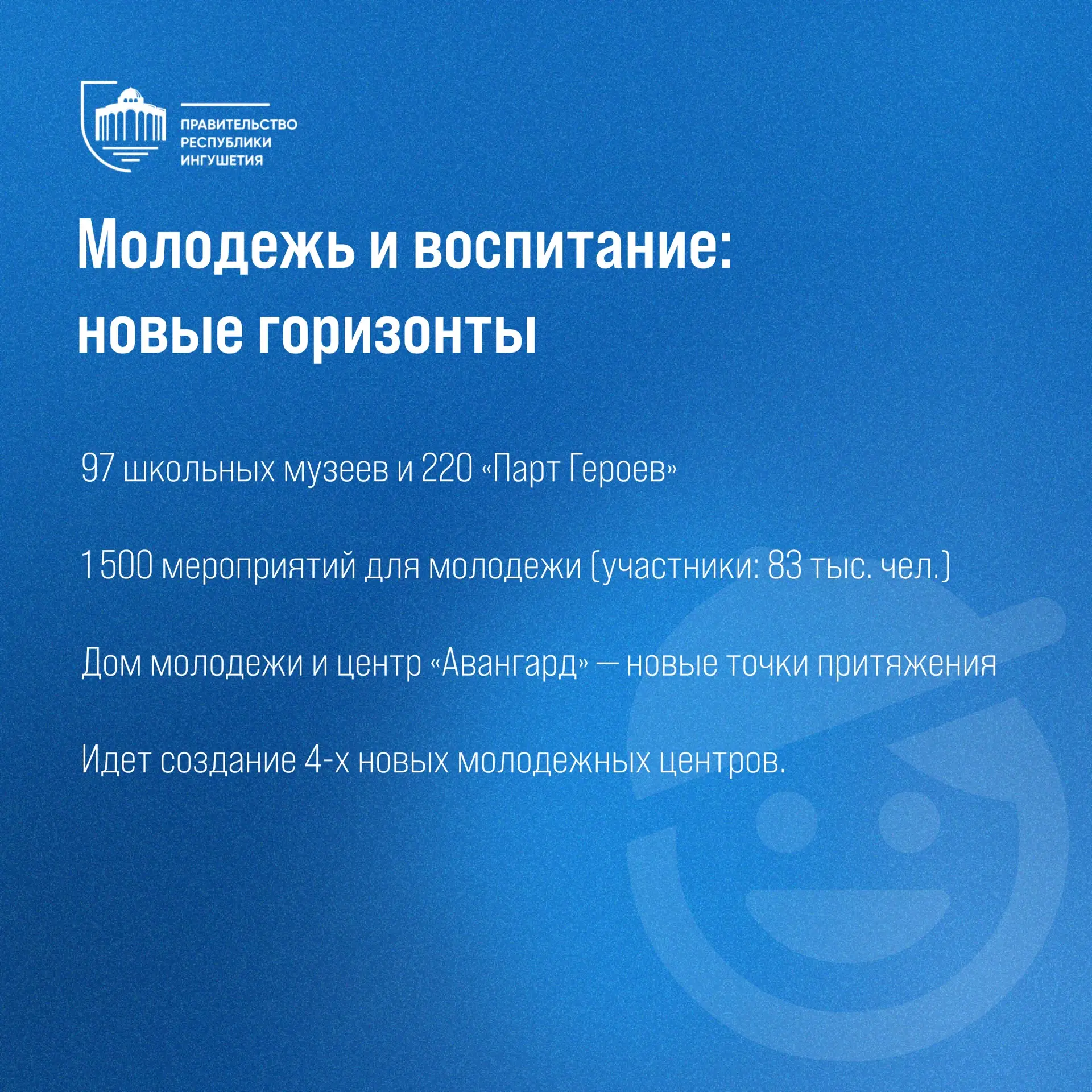 Отдельный блок отчета Правительства посвящен воспитательной работе и развитию молодежной инфраструктуры.