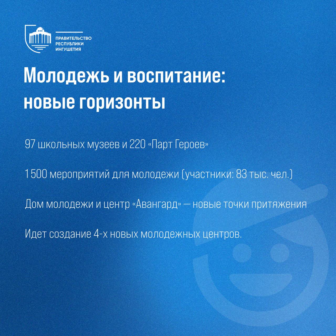 Отдельный блок отчета Правительства посвящен воспитательной работе и развитию молодежной инфраструктуры.