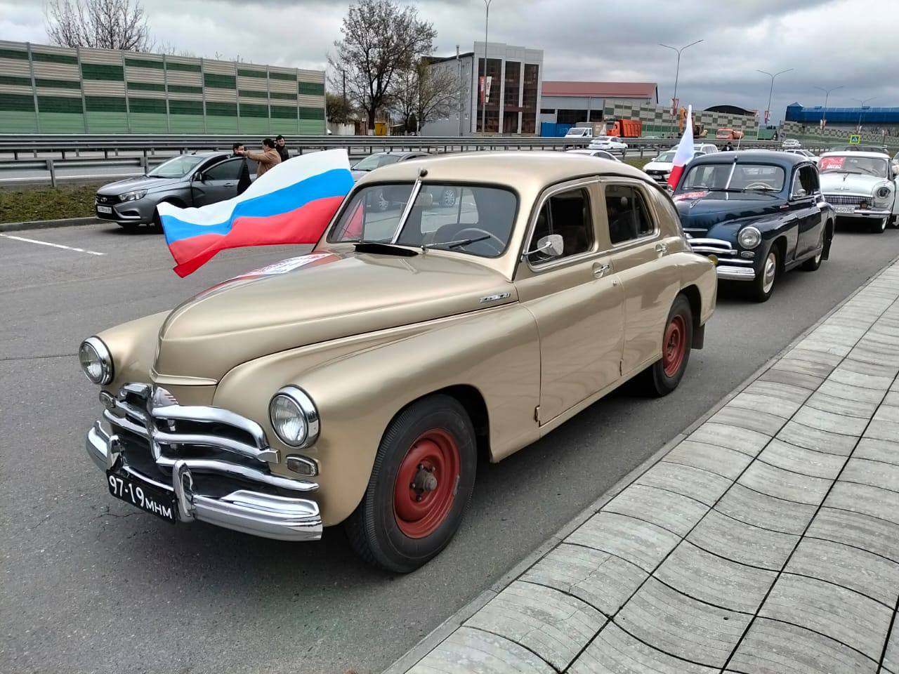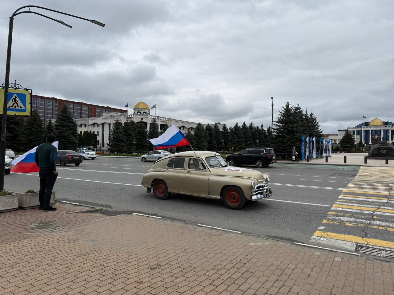 Колонна двигалась под государственными и национальными флагами. Особую атмосферу мероприятию придали ретро-автомобили — «Победа» и «Волга», символизирующие связь поколений и уважение к истории.