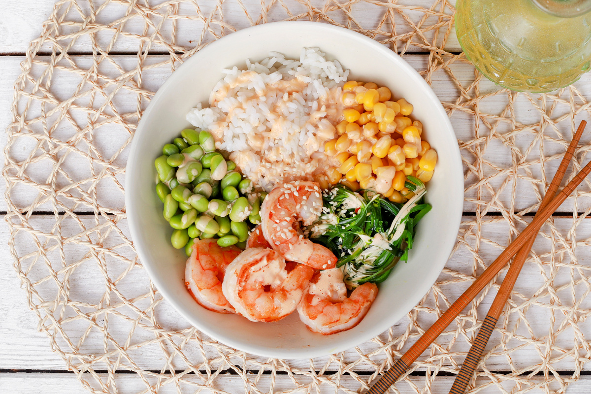 Покорите вкусом: поке с креветками, чука и эдамаме