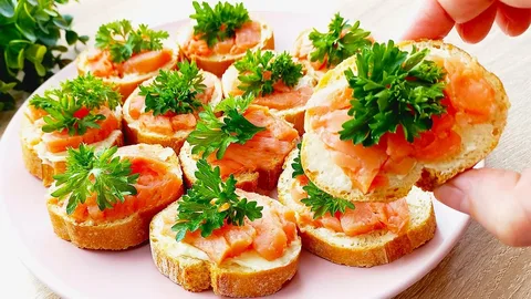 Копченый лосось — еще один незаменимый элемент на праздничном столе. Его мягкий вкус в сочетании со сливочным авокадо представляет собой настоящую гастрономическую симфонию. Для приготовления понадобятся чиабатта или ржаные хлебцы, свежие авокадо, лимонный сок, а также соль и перец.
