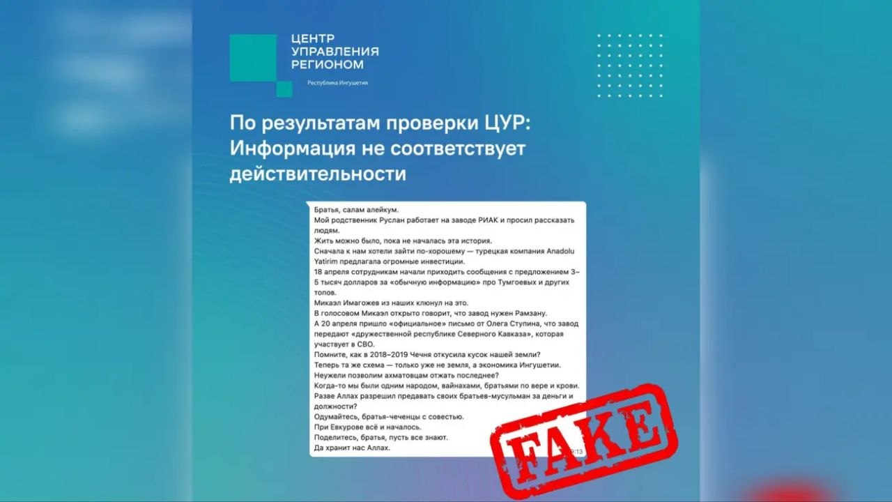 Информацию о передаче завода РИАК опровергли в Ингушетии
